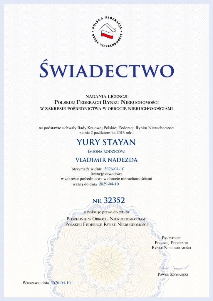 Wybierając agencja nieruchomości Piętra, zyskują Państwo pewność, że współpracują z zespołem ekspertów. Nasze zaangażowanie w ciągły rozwój i doskonalenie zawodowe potwierdzają liczne certyfikaty i uprawnienia.